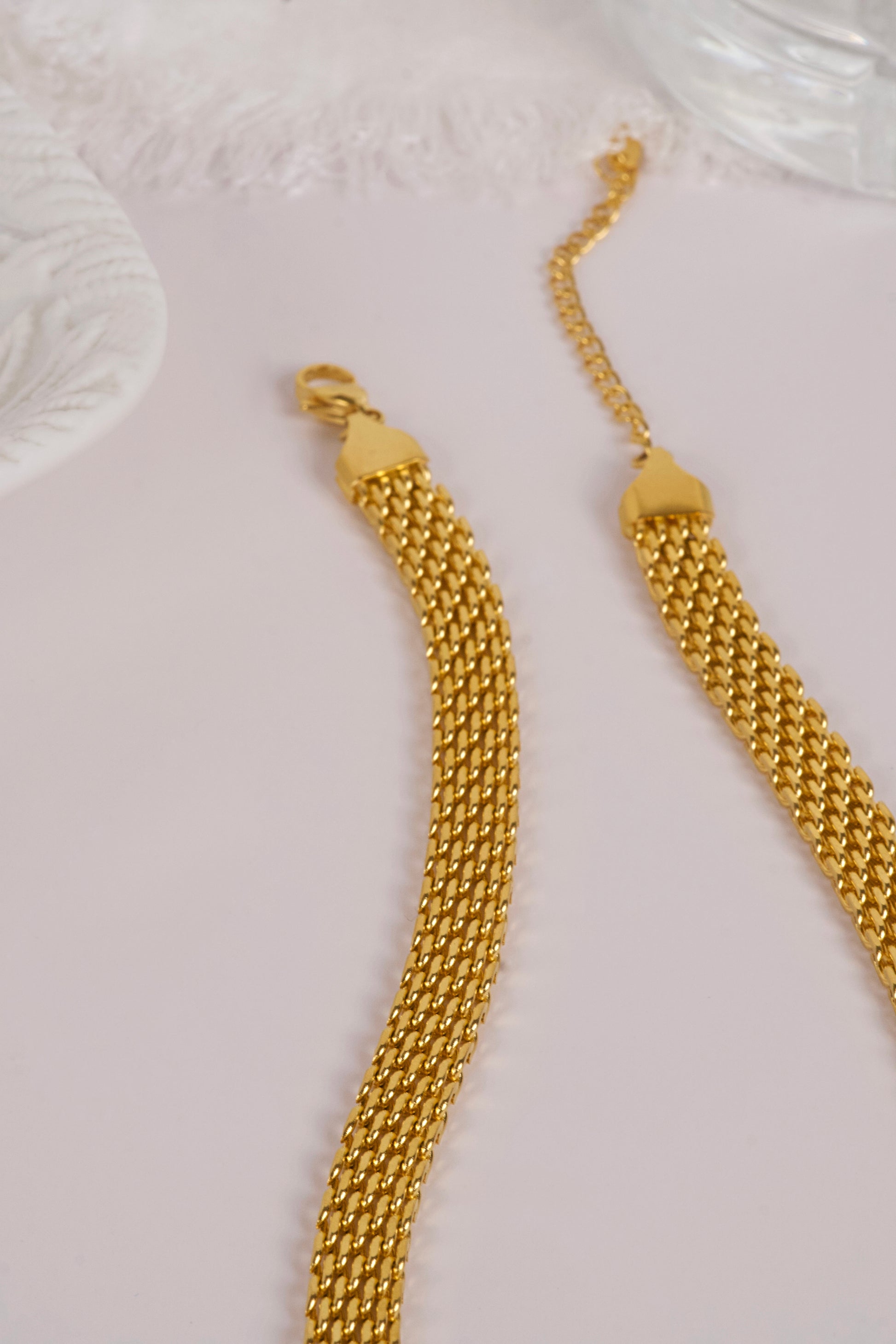 Charlotte Choker—a vintage soul with contemporary polish. This intricately detailed chain mirrors the charm of its matching bracelet, offering a refined, textured silhouette that sits elegantly at the neckline. Style it solo or pair it with the Charlotte Bracelet for a timeless, layered look.