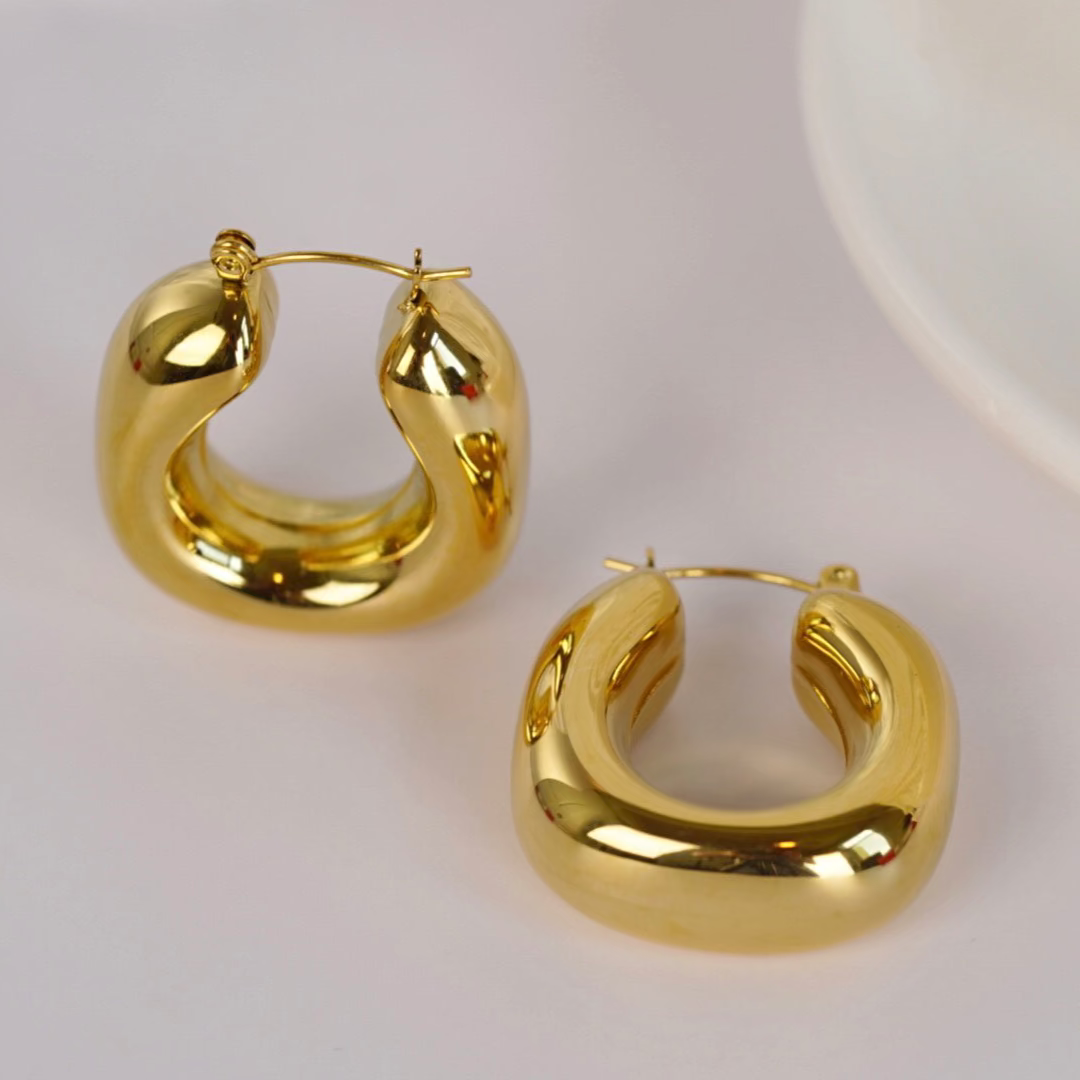 Crafted with our signature 18k gold plating over a durable stainless steel base, they’re waterproof, tarnish-resistant, and hypoallergenic—made to move with you, wherever the day (or night) takes you.